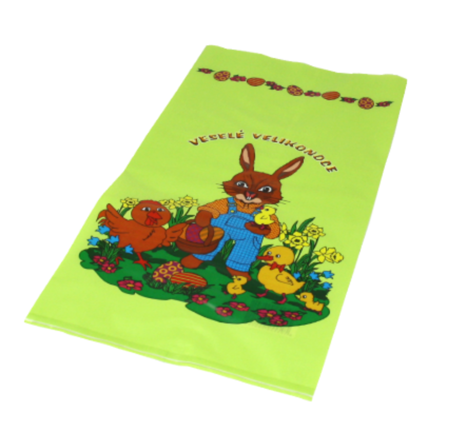 Tatrafánový (celofánový) sáček 20x40 cm s potiskem Veselé Velikonoce