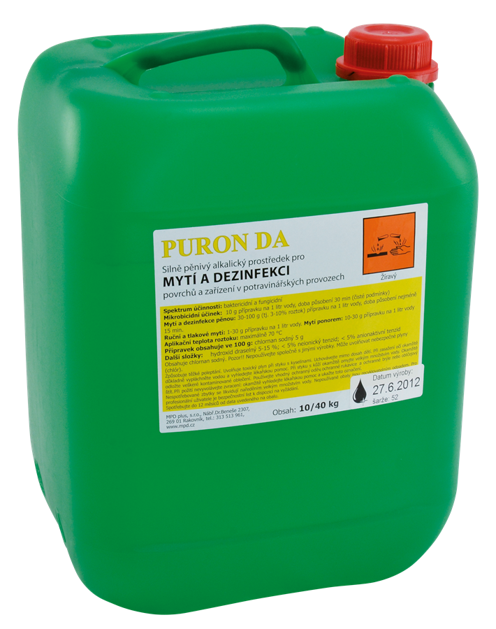 Puron DA je alkalický mycí prostředek s obsahem aktivního chlóru určený pro mytí a dezinfekci zejména v potravinářském průmyslu a zemědělství.