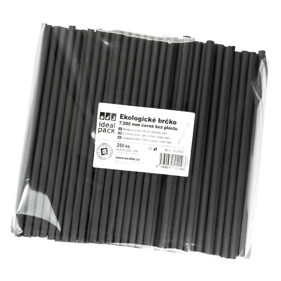 Ekologická brčka bez plastuEkologické brčko 7/200 mm černé bez plastu ideal pack®Hlavní výhodou těchto PLA FREE kompostovatelných/biodegradabilních brček je, že jsou oproti běžným plastovým brčkům vho...
