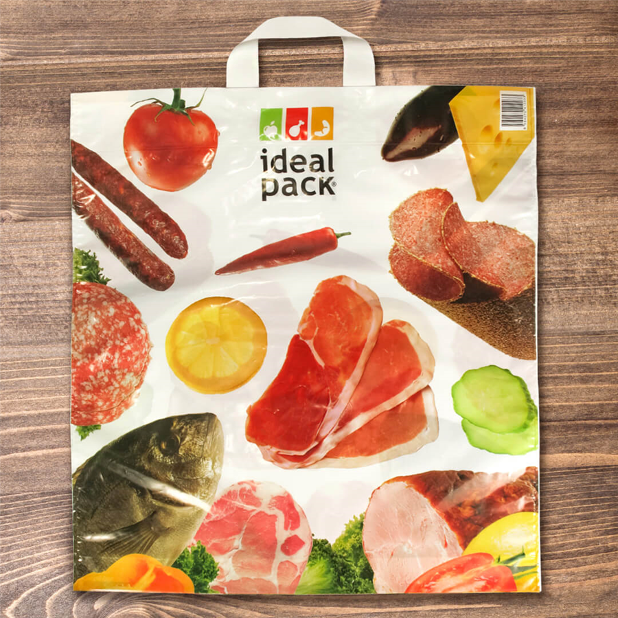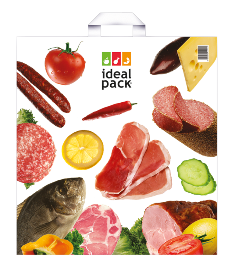 Igelitové tašky s uchy ideal pack® Maso, se vyznačují vysokou kvalitou a nosností až 18 kg.