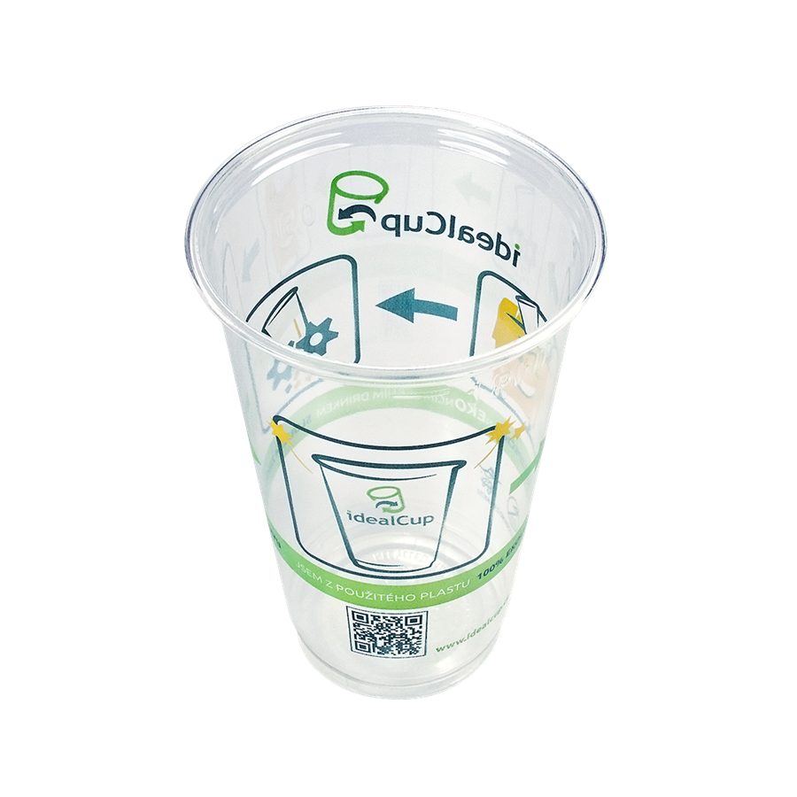 Recyklované a opět recyklovatelné jednorázové kelímky idealCup jsou křišťálově čiré, optimálně pevné, bezpečné a ekologické nápojové kelímky.