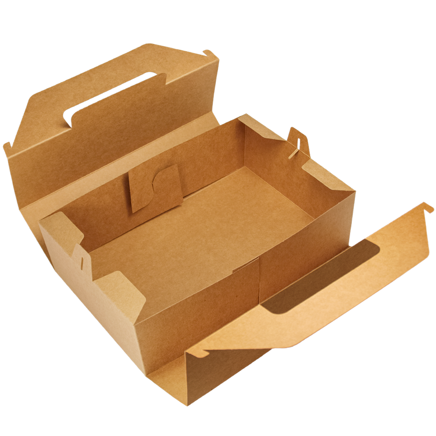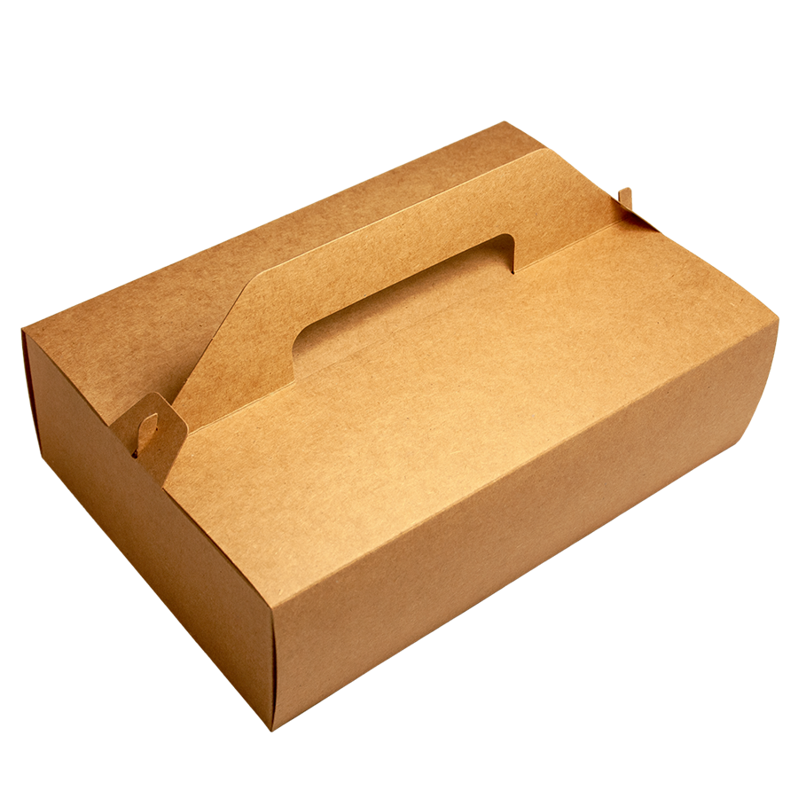 V balení naleznete 50 ks papírových krabic s uchem KRAFT