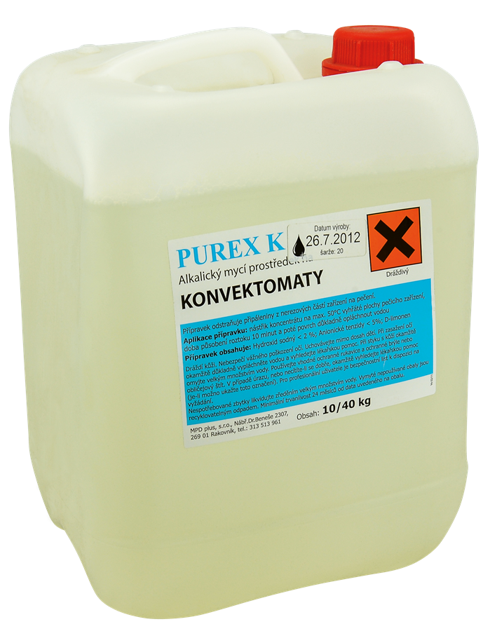 Purex K je alkalický prostředek pro mytí a snadné čištění připálenin z konvektomatů a pečících trub. Tento profesionální čistící prostředek, je zejména určený pro použití v hotelech a velkokuchyních.