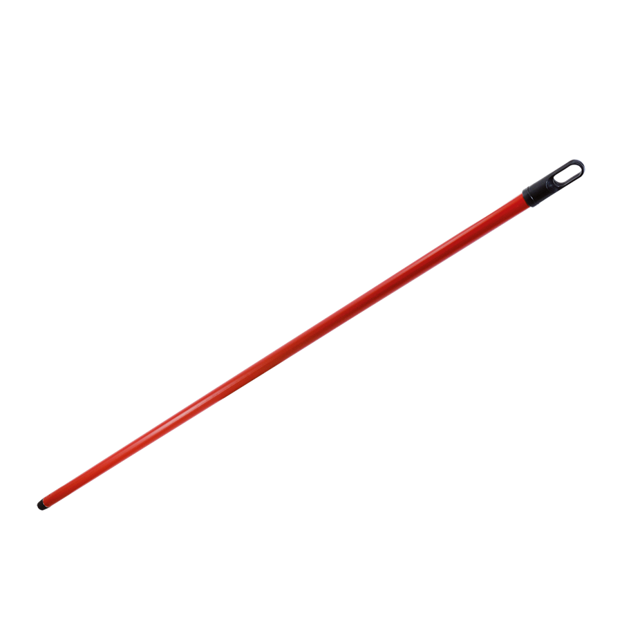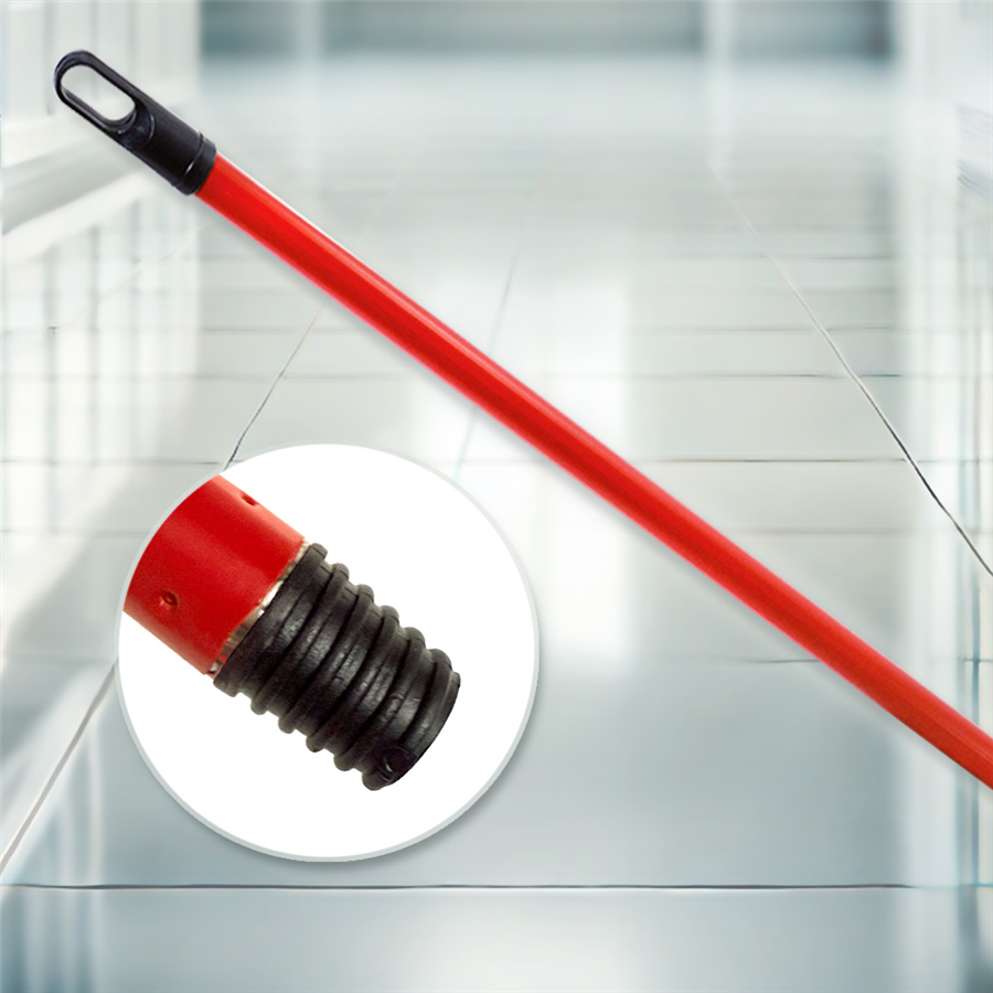Kovová násada na smeták s hrubým závitem je potažena plastem pro příjemnější uchopení.