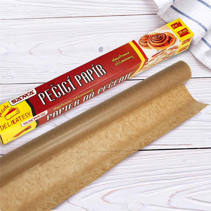 Pečící papír (papír na pečení) 38cm x 8 m v roliKvalitní oboustranně použitelný pečící papír, je nepostradatelným pomocníkem v každé domácnosti, v gastro provozech a zařízeních, jako jsou například, p...