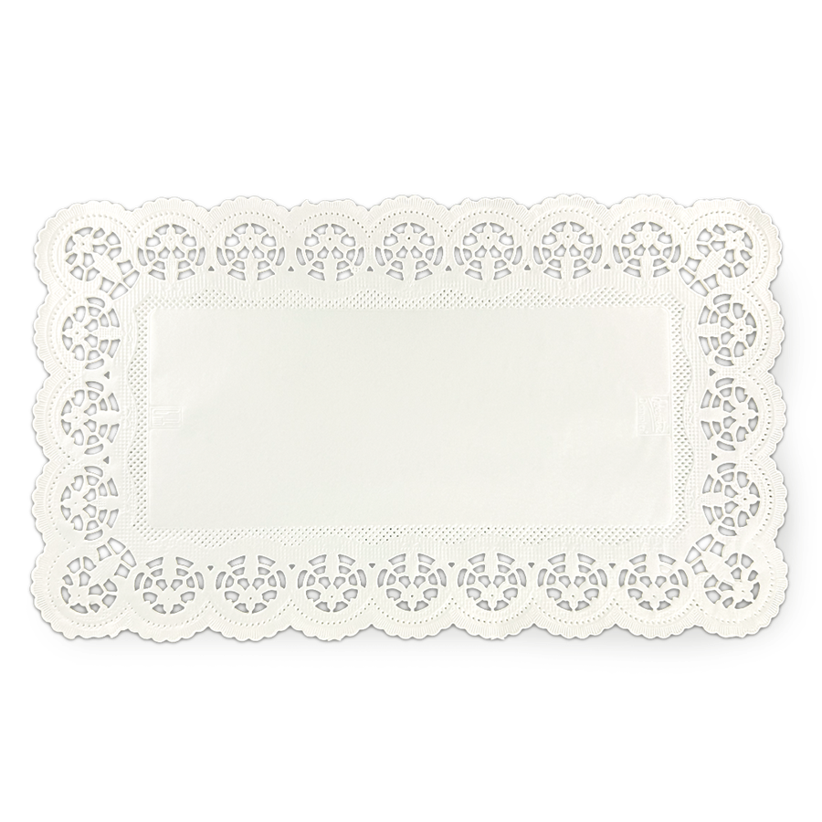 Krajky (rozetky) dekorativní hranaté 18x30 cm, jsou estetickým doplňkem při servírovánízákusků, dezertů a nejrůznějších lahůdek.Dekorativní rozetka se využívá jako vkusný doplněk na talíře a servírova...