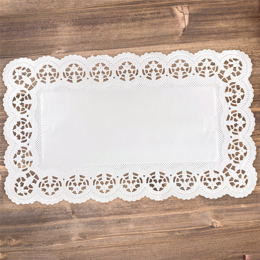 Dekorativní papírová krajka hranatáKrajky (rozetky) dekorativní hranaté 20x40 cm, jsou estetickým doplňkem při servírovánízákusků, dezertů a nejrůznějších lahůdek.Dekorativní rozetka se hodí i k ozdob...