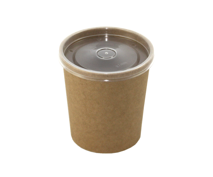 Papírová miska EKO na polévku 340 ml kraft s transp. víčkem
