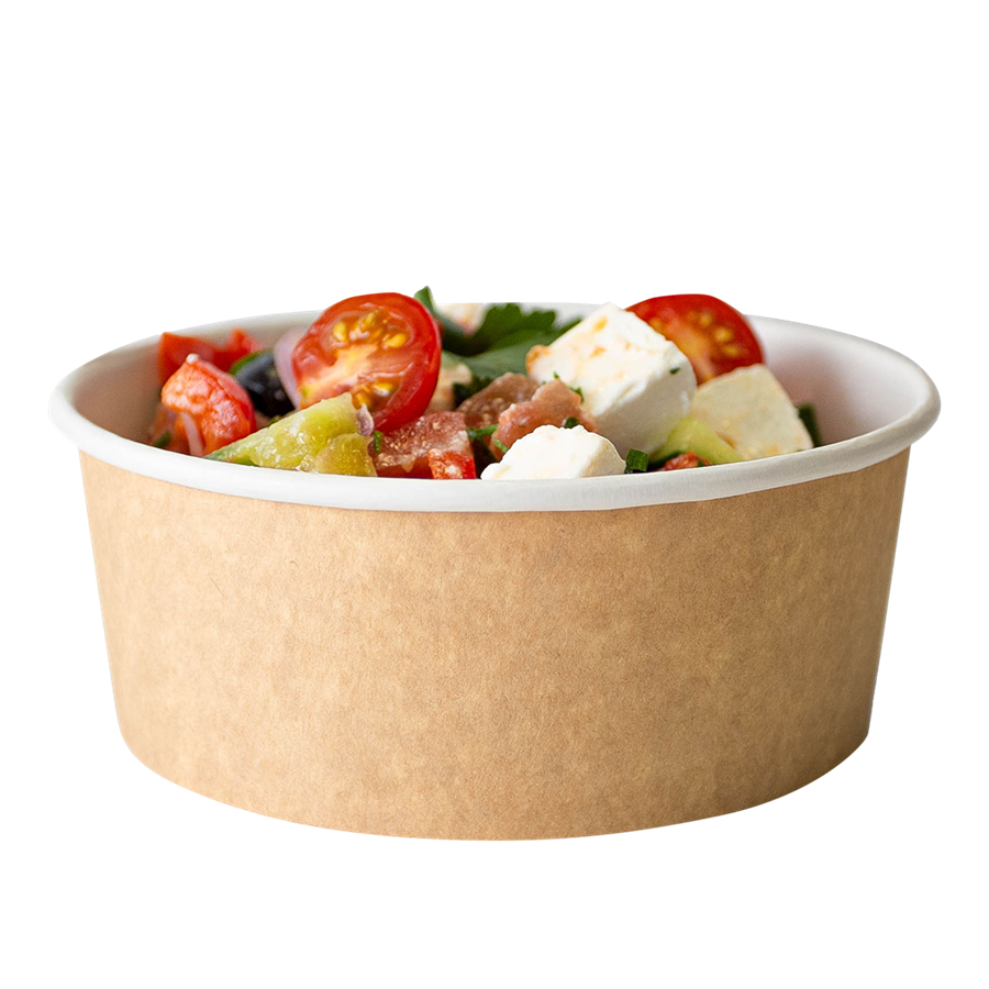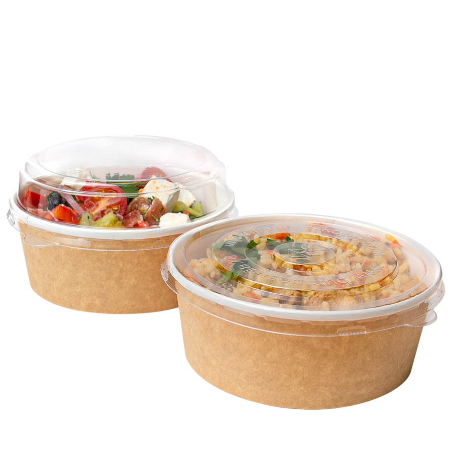 Papírová miska na polévku/papírová miska na salátPapírová miska na polévku/papírová miska na salát 128/150x77 mm EKO kraft s transparentním víčkem, je ideální řešení pro balení teplých i studených hot...