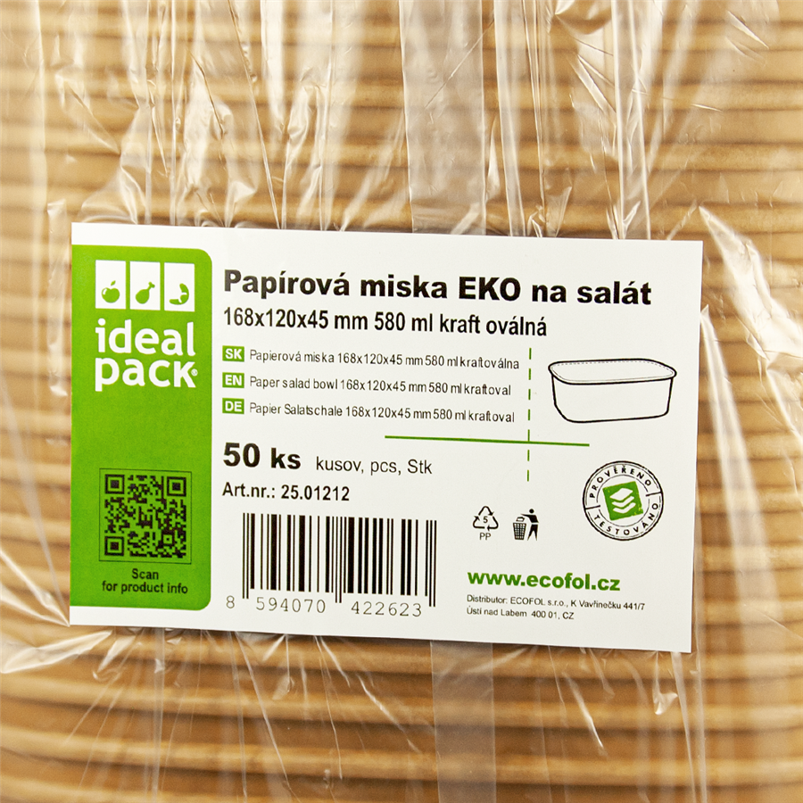 Papírovou misku EKO na salát 168x120x45 mm 580 ml kraft oválnou lze uzavírat pomocí víčka pod kódem - 25.01218