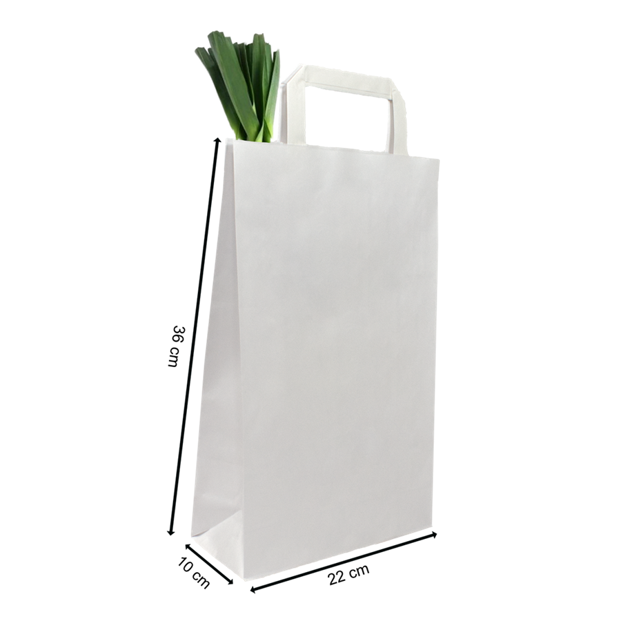Papírová taška s plochým uchem 220+100x360 mm bíláPapírová taška s plochým uchem 220+100x360 mm bílá