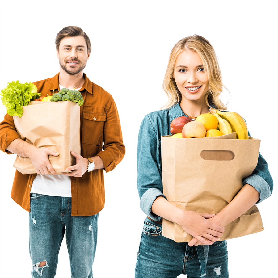 Papírovými taškami s průhmatem lze rovněž řešit přenos a převoz hotových jídel, pekařských výrobků, ovoce, zeleniny apod. V posledních letech jsou papírové tašky velmi oblíbené právě pro delivery.