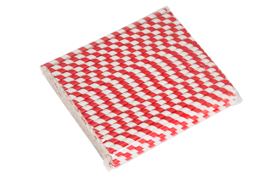Papírové brčko červeno-bílé proužky 8/197 mm