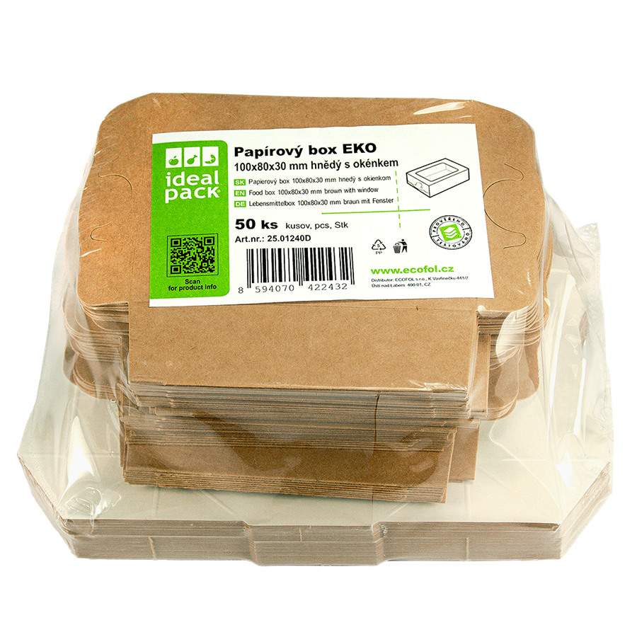 Papírový box / krabička EKO na jídlo 100x80x30 mm hnědý s okénkem ideal pack®Papírový box / krabička EKO na jídlo 100x80x30 mm hnědý s okénkem ideal pack®Papírový box / krabička EKO na jídlo 100x80x30 mm hnědý s okénkem ideal pack®
