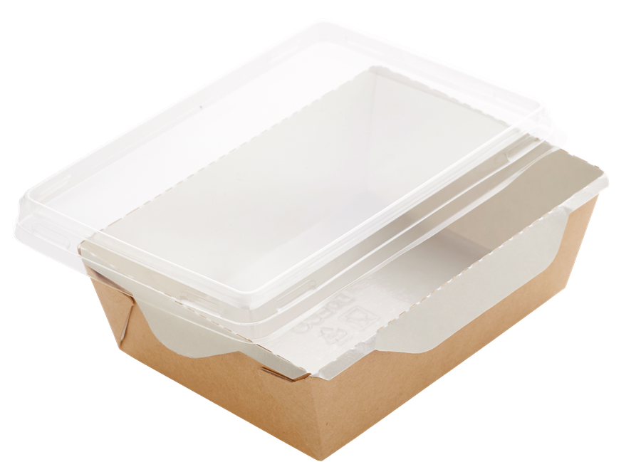 Papírový box / papírová miska 145x95x45 mm EKO na salát či cukroví s transparentním víčkem je ekologické řešení pro italské, asijské a take away restaurace, bary, cukrárny, kavárny apod.
