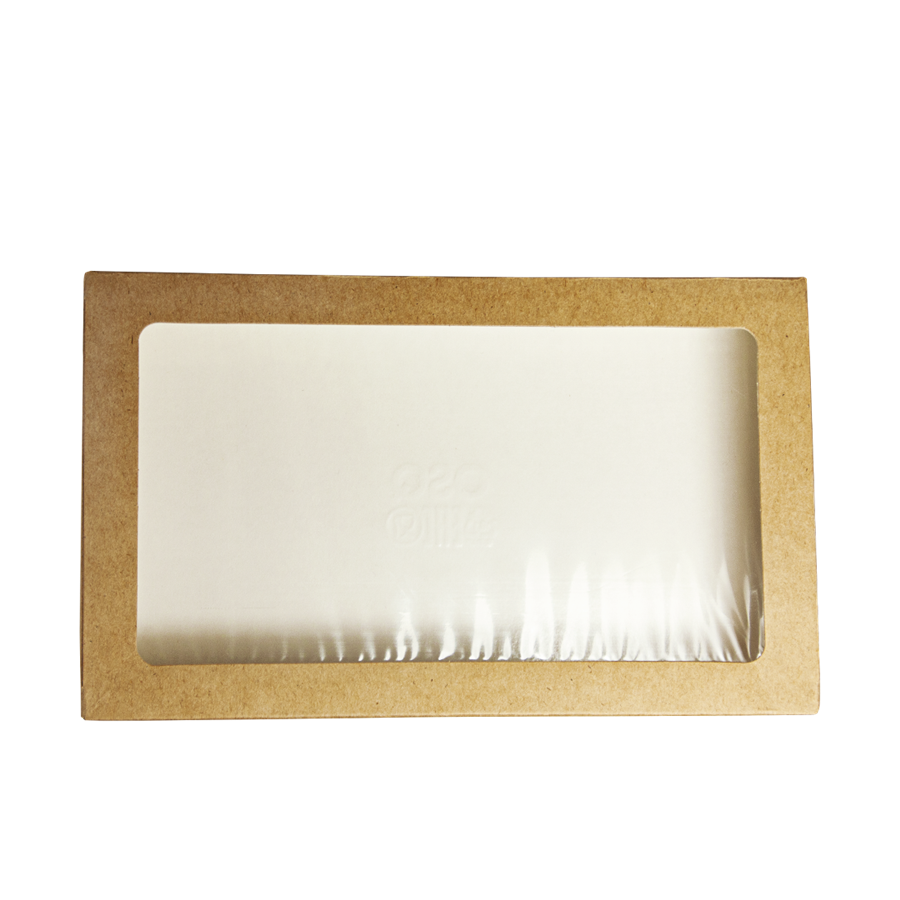 Papírový box / papírová krabička 260x150x40 mm EKO na jídlo s okénkem je ekologické řešení pro italské, asijské a take away restaurace. Papírový box/papírová krabička je vhodný obal pro balení a rozvo...