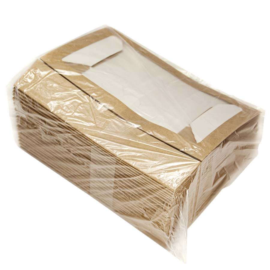 Papírový box (krabička) na jídloPapírový box na jídlo hnědý s okénkem 200x120x40 mm, je ekologický obal pro asijské restaurace a italské restaurace, take away restaurace a prodejce rychlého občerstven...