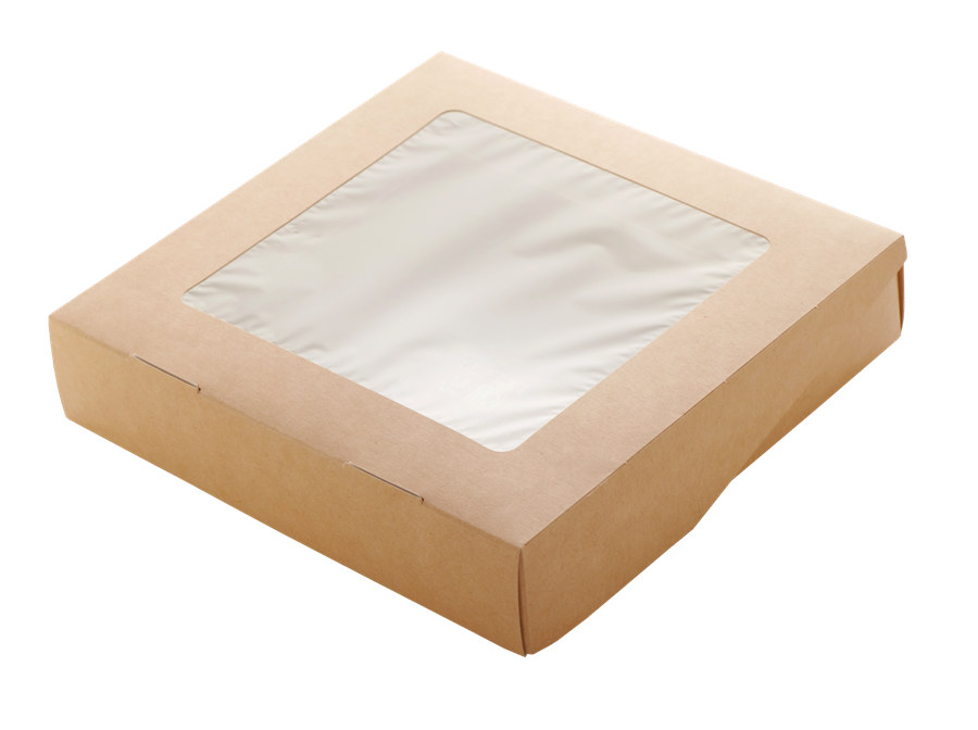 Papírový box EKO na jídlo 200x200x40 mm hnědý s okénkem 1500 ml ideal pack®