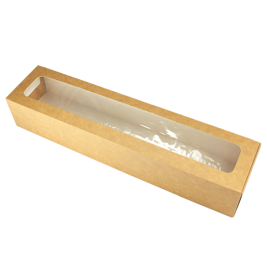 Papírový box na jídlo hnědý s okénkem 350x80x60 mm