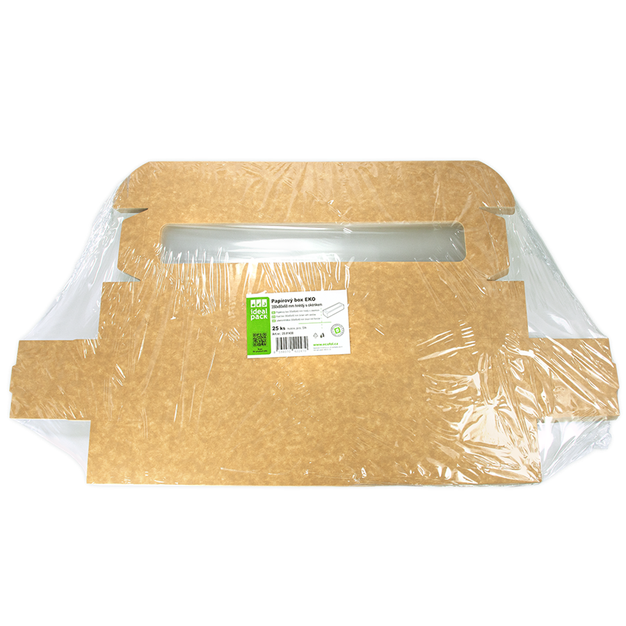 Papírový box EKO na jídlo 350x80x60 mm hnědý s okénkem ideal pack®Papírový box EKO na jídlo 350x80x60 mm hnědý s okénkem ideal pack®