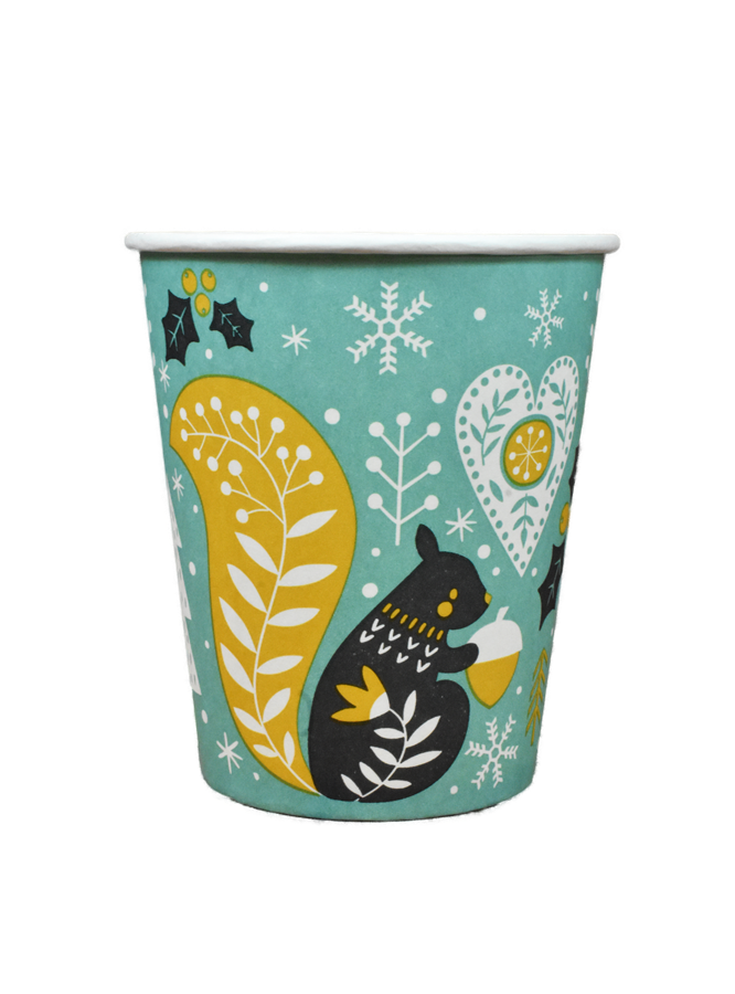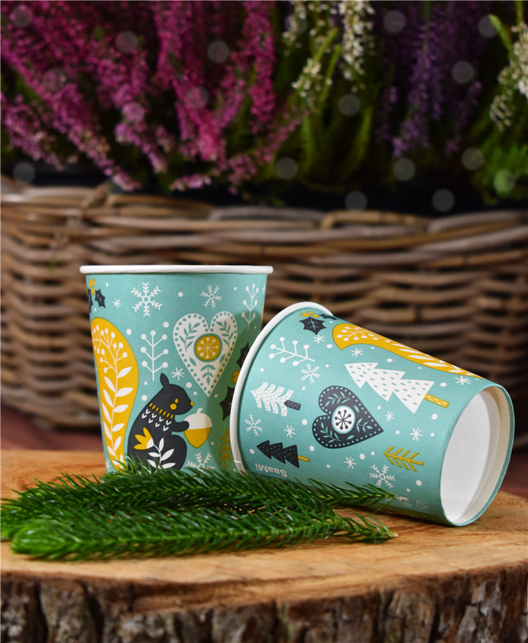 papírového kelímku se zimním potiskem je příjemné nápoje pít, při používání nehrozí popálení rukou a v neposlední řadě jde o ekologickou variantu nápojových kelímků používaných na kávu, cappuccino a další oblíbené nápoje nejen z kávy.