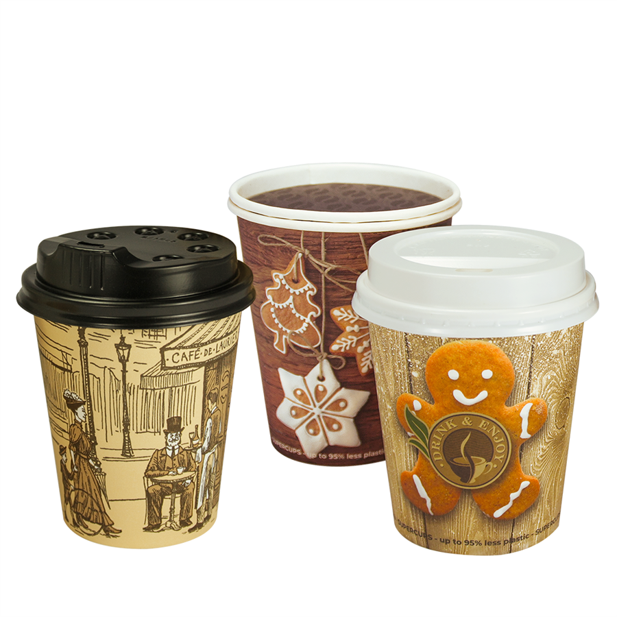 Kelímky (pohárky) na kávu papírové s potiskem, jsou nejčastěji používaným typem papírových kelímků, určených pro podávání horkých nápojů nejen na adventních trzích.