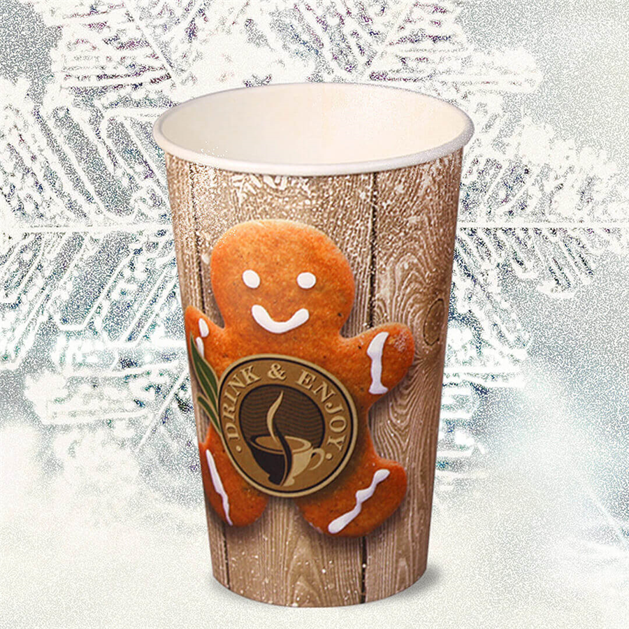 Papírový kelímek na kávu CTG 0,35 l jednovrstvý s motivem Perníček o průměru 90 mm