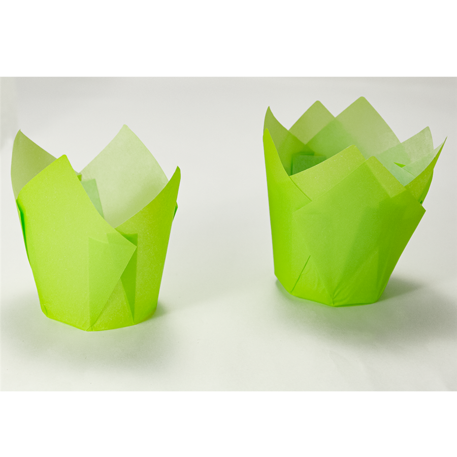 Papírové košíčky tulipán jsou skvělým doplňkem pro každé cukrářství, pekařství i domácí pečení. Košíček tulipán na muffiny má moderní a nevšední design, ale také praktickou funkci. Zelený košíček dodá vašim muffinům a cupcakům jedinečný vzhled, který zaujme každého zákazníka. Tyto papírové košíčky jsou vhodné pro pečení různých druhů muffinů a cupcaků, které potřebují pevnou a spolehlivou oporu během pečení i servírování.
