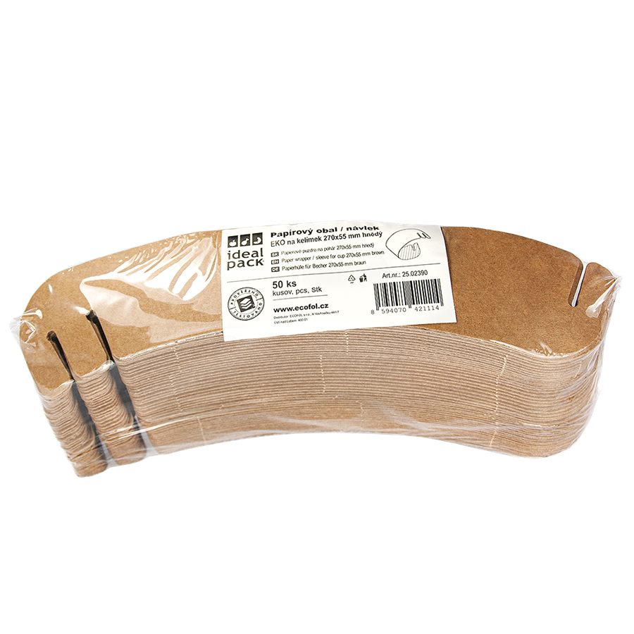 Papírový obal / návlek EKO na kelímek 270x55 mm hnědý ideal pack®