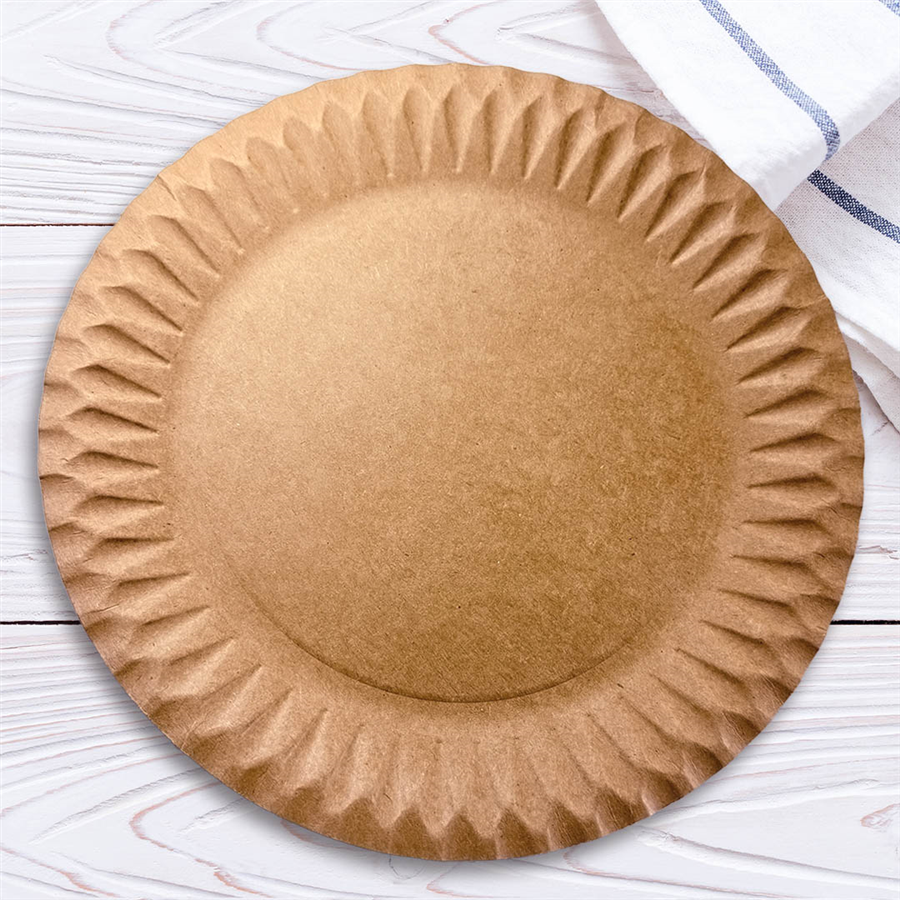 Ekologické hnědé papírové talíře jsou vyrobeny z recyklovatelné lepenky