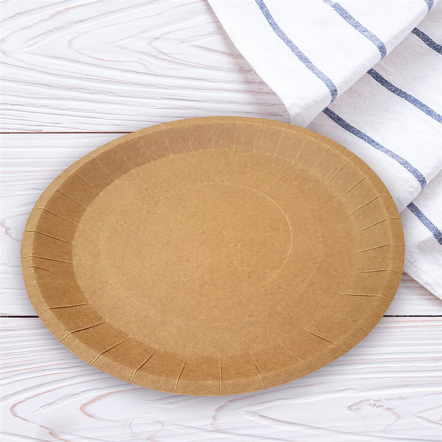 Ekologické hnědé papírové talíře jsou vyrobeny z recyklovatelné lepenky