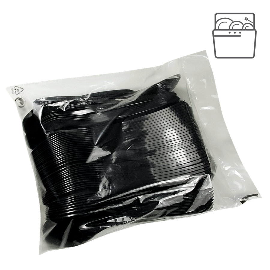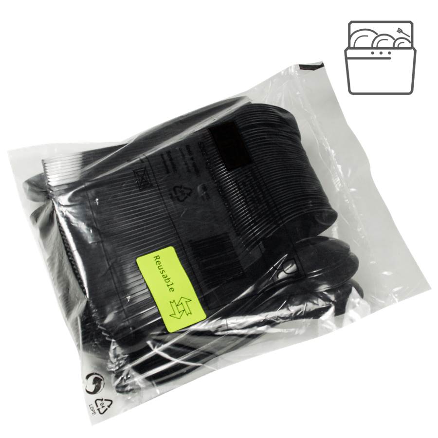 Opakovaně použitelná plastová vidlička 18 cm černáPlastové vidličky jsou určeny jak k jednorázovému, tak opakovanému použití.Tyto opakovaně použitelné plastové vidličky lze umývat v myčkách na nádobí,...