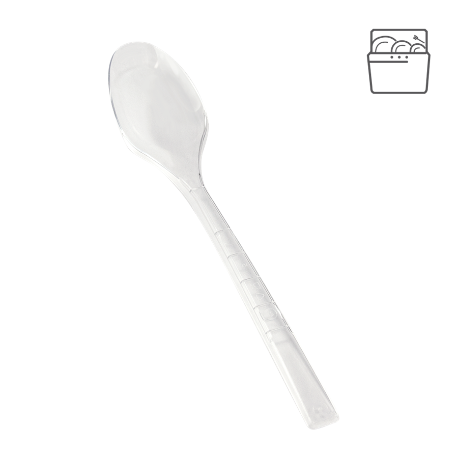 Opakovaně použitelná plastová lžíce 18 cm transparentní light - pártyPlastové lžíce jsou určeny k opakovanému použití.Tyto opakovaně použitelné plastové lžíce lze umývat v myčkách na nádobí, přičemž j...