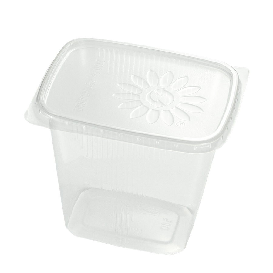 K hranatým 100% recyklovatelným miskám nabízíme rovněž plastová víčka.