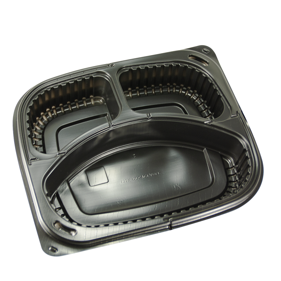Plastová miska na jídlo PP 1000 ml jednorázová černá třídílnáMisky plastové jednorázové na jídlo (plastové menu boxy) černé jsou ideálním řešením pro balení hotových jídel, zejména pro balení obědů, p...