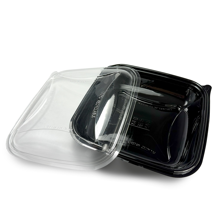 Plastová miska rPET 190x190x40 mm hranatá 750 ml černá s transparentním víčkem