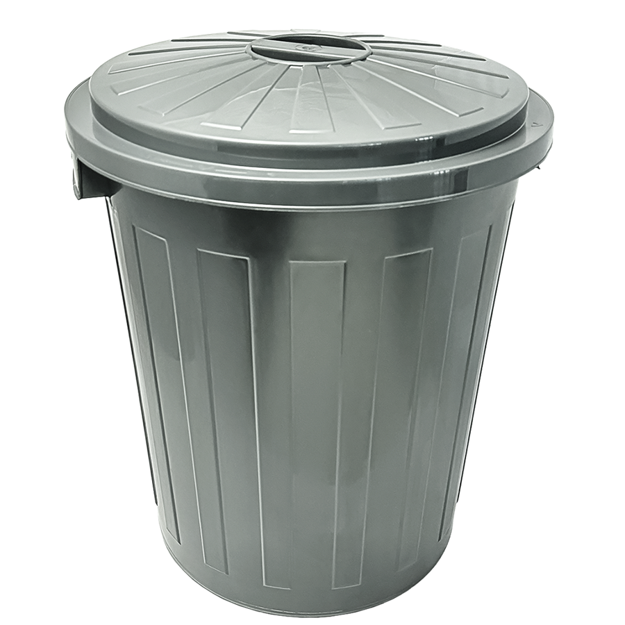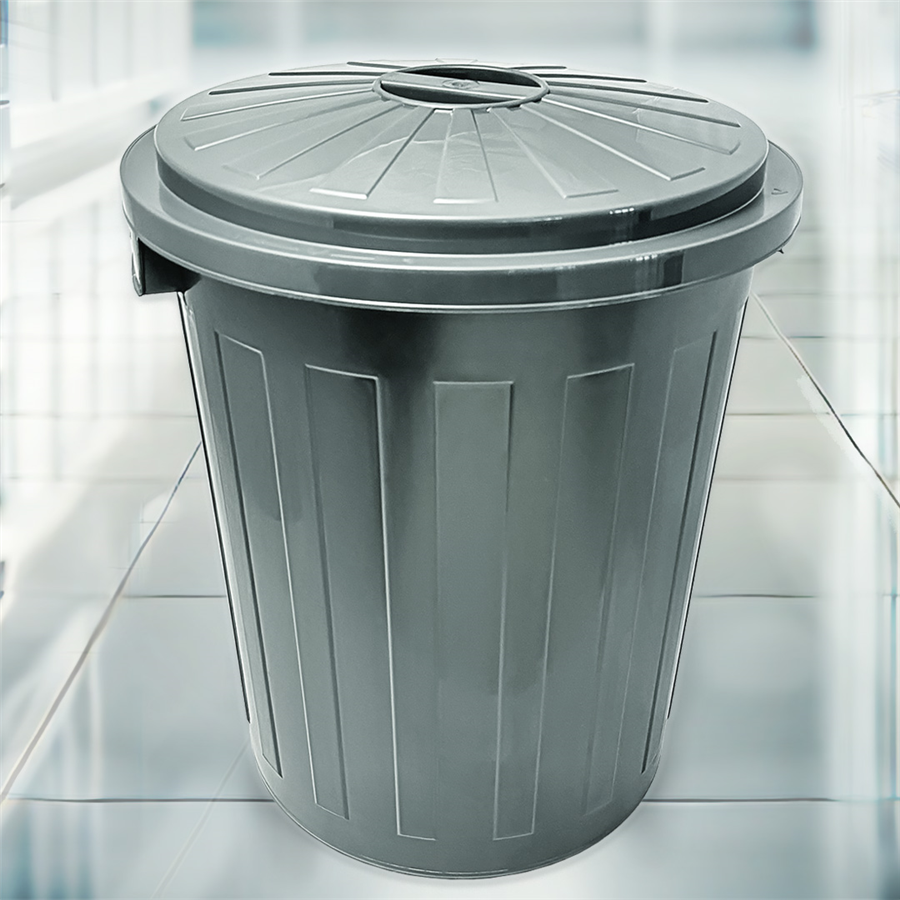 Plastová popelnice / odpadkový koš popelnicového typu má odnímatelné víko, které se dá postranními madly uzavírat.