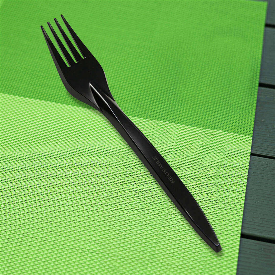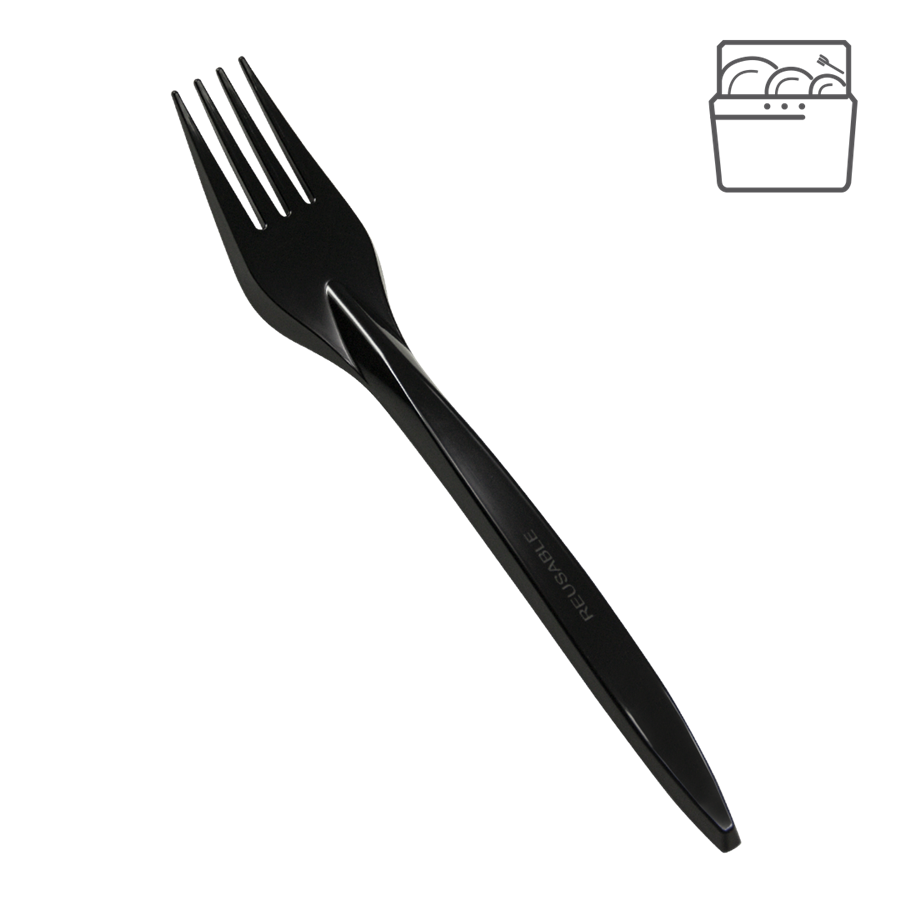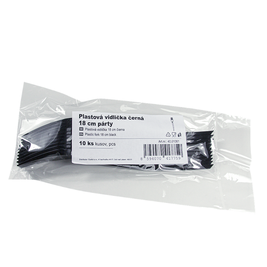 Opakovaně použitelná plastová vidlička 18 cm černá - pártyPlastové vidličky jsou určeny jak k jednorázovému, tak opakovanému použití.Tyto opakovaně použitelné plastové vidličky lze umývat v myčkách na...