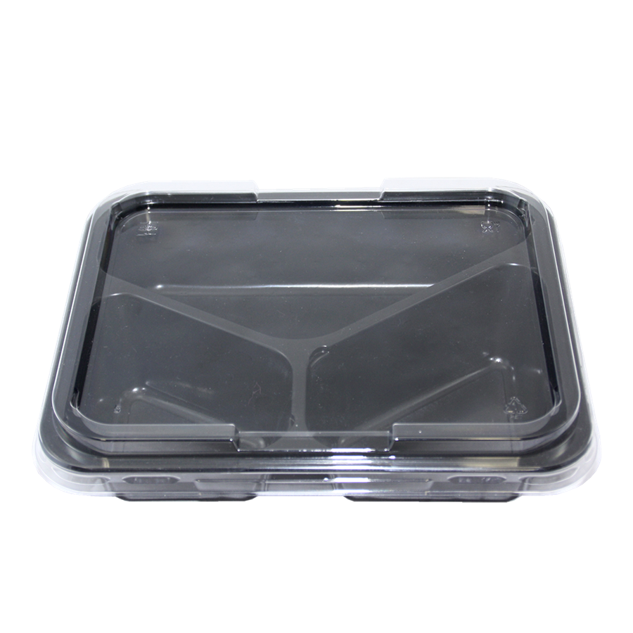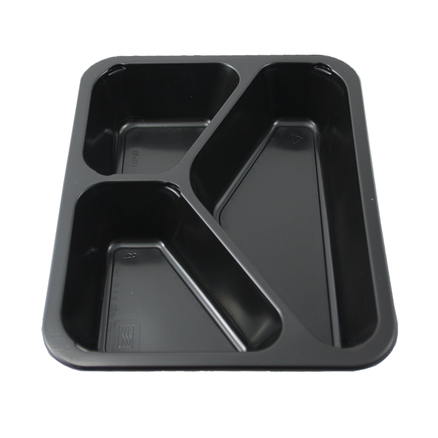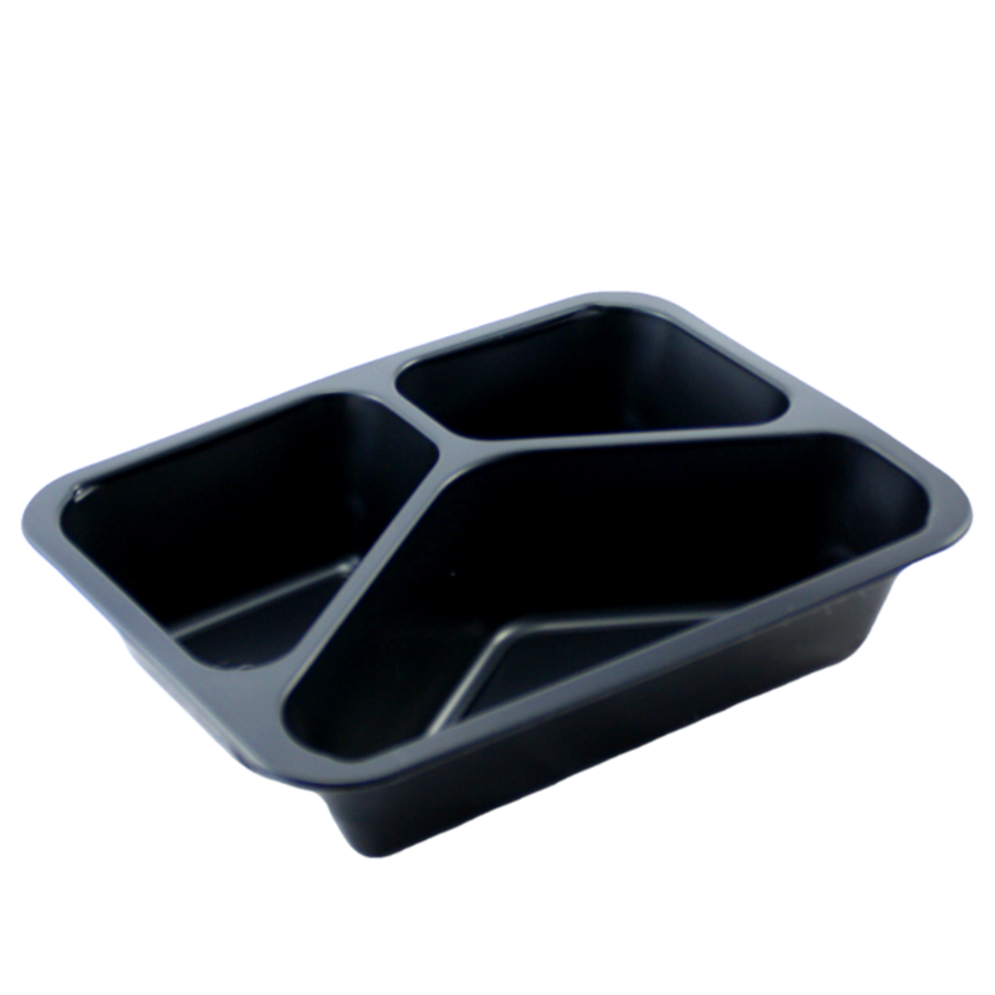 Hranaté zatavovací třídílné misky lze uzavírat pomocí zatavovacího stroje a zatavovací folie, které rovněž naleznete v našem sortimentu.