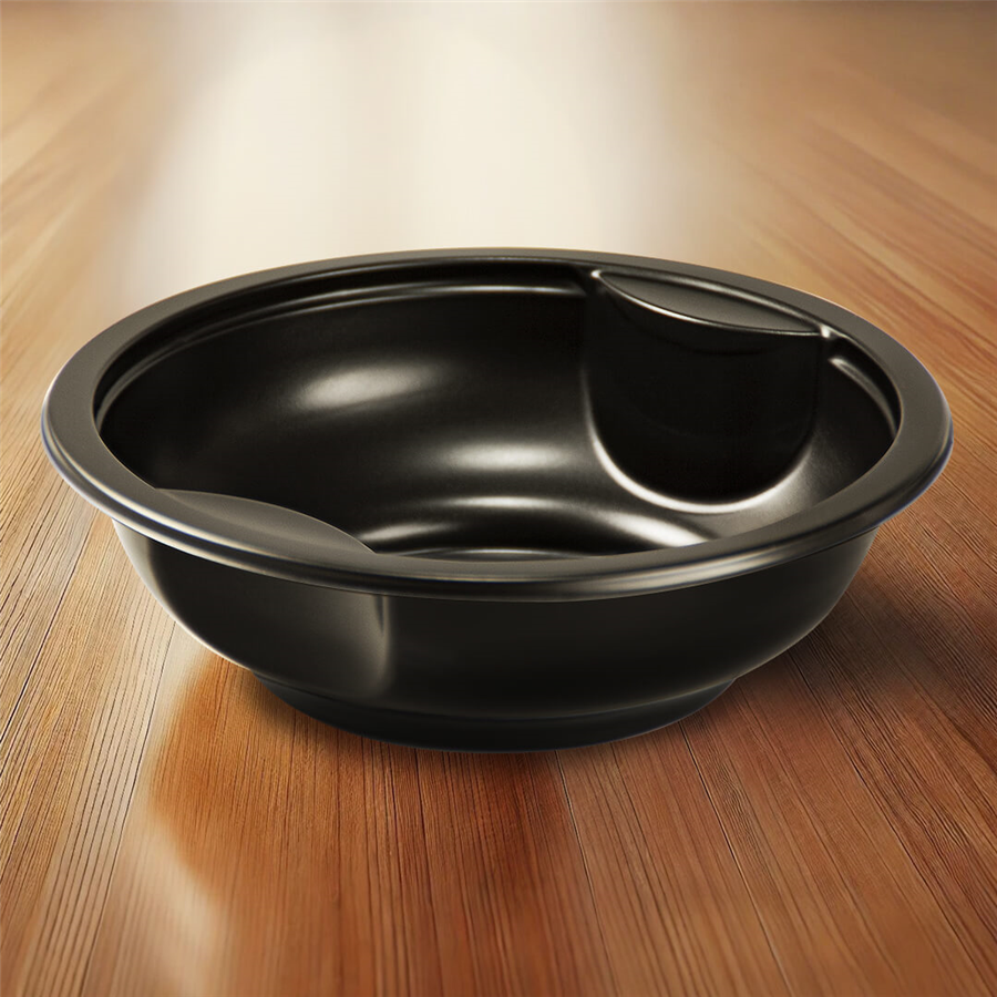 zatavovací miska, polévková zatavovací miska, obal na rozvoz, polévkový obal na rozvoz, černá miska k zatavení, plastová jednorázová miska na polévku, zatavovací miska na jídlo, kulatá zatavovací polévková miska, menu miska, miska na hotové jídlo