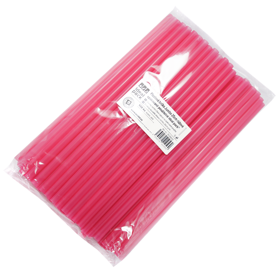 Růžové plastové brčko Jumbo 25cm opakovaně použitelné ideal pack®