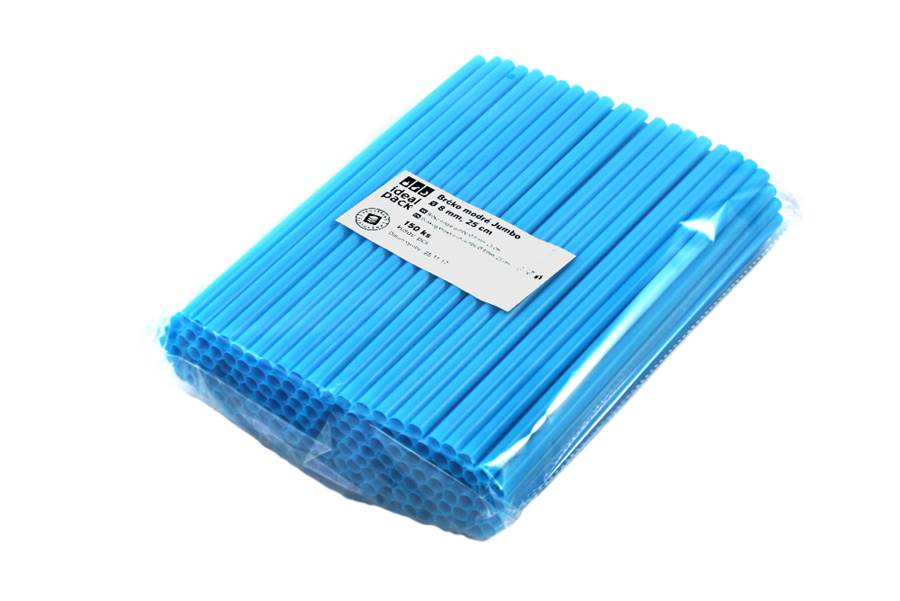 Plastová modrá brčka Jumbo ideal pack® budou ozdobou i praktickým doplňkem osvěžujících nápojů podávaných v restauracích, barech, na diskotékách, jednoduše všude tam, kde se tyto nápoje připravují.