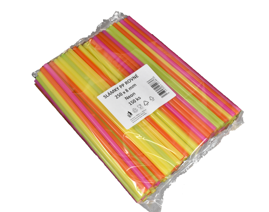 Plastové brčko NEON MIX nabízíme v balení po 150ks. Karton obsahuje 12 balení plastových brček