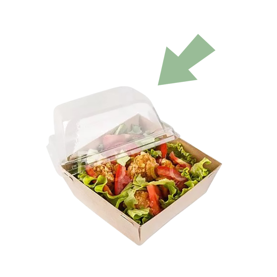 Transparentní plastové víčko k salátové miscePlastové víčko na misku EKO na salát 130x130 mm transparentní je určené k uzavření EKO papírových misek k rozvozu, přenosu a podávání především čerstvých salátů. Zeleninové saláty, ovocné saláty, těstovinové saláty na všechny tyto varianty je vhodná tato ekologická papírová miska uzavřená transparentním PET víčkem.Saláty jsou vhodnou přílohou k dennímu menu nebo i jako zdravá varianta oběda, proto jsou tato jednorázová PET víčka na papírové salátové misky na rozvoz skvělou volbou.Tato PET víčka na misky jsou také vhodné pro svůj transparentní materiál k prezentování pokrmu u pultového prodeje. Transparentním plastovým víčkem obsah v misce ochráníte před pádem nečistot z vnějšího okolí, před bakteriemi i před přímým kontaktem při rozvozu.Obal je vhodný pro balení studených jídel.Víčko není vhodné pro ohřev v mikrovlnné troubě.Plastové víčko je použitelné pro misku pod kódem - 25.01928