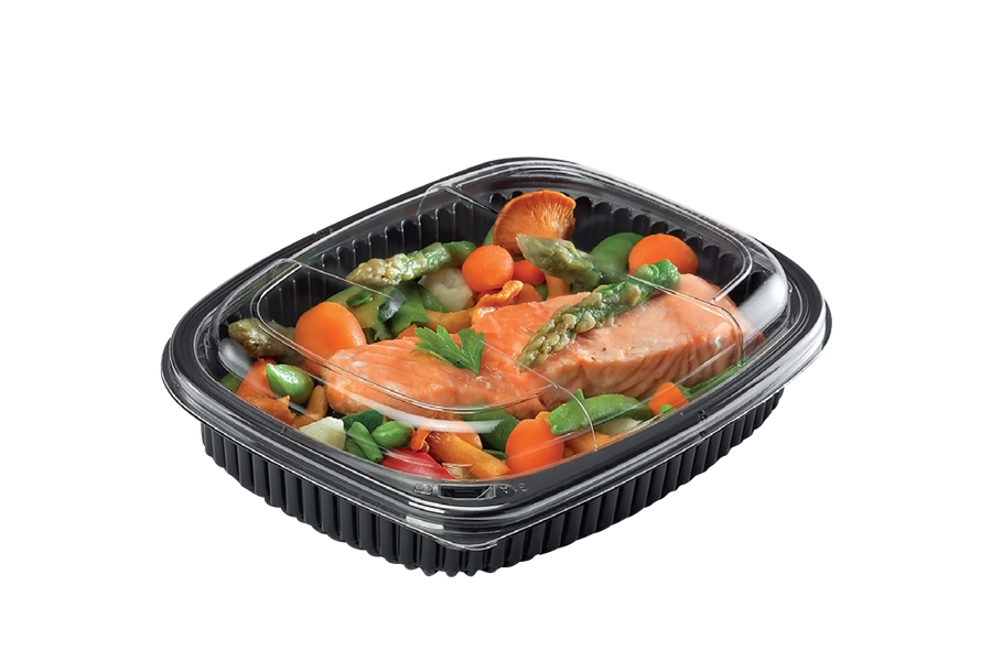 dobře vidět, tím zajišťuje zákazníkovi přehled o čerstvosti hotového pokrmu. Navíc je obsah díky víčku při přepravě a přenosu chráněn před vnějšími vlivy, viry, bakteriemi a přímým kontaktem.