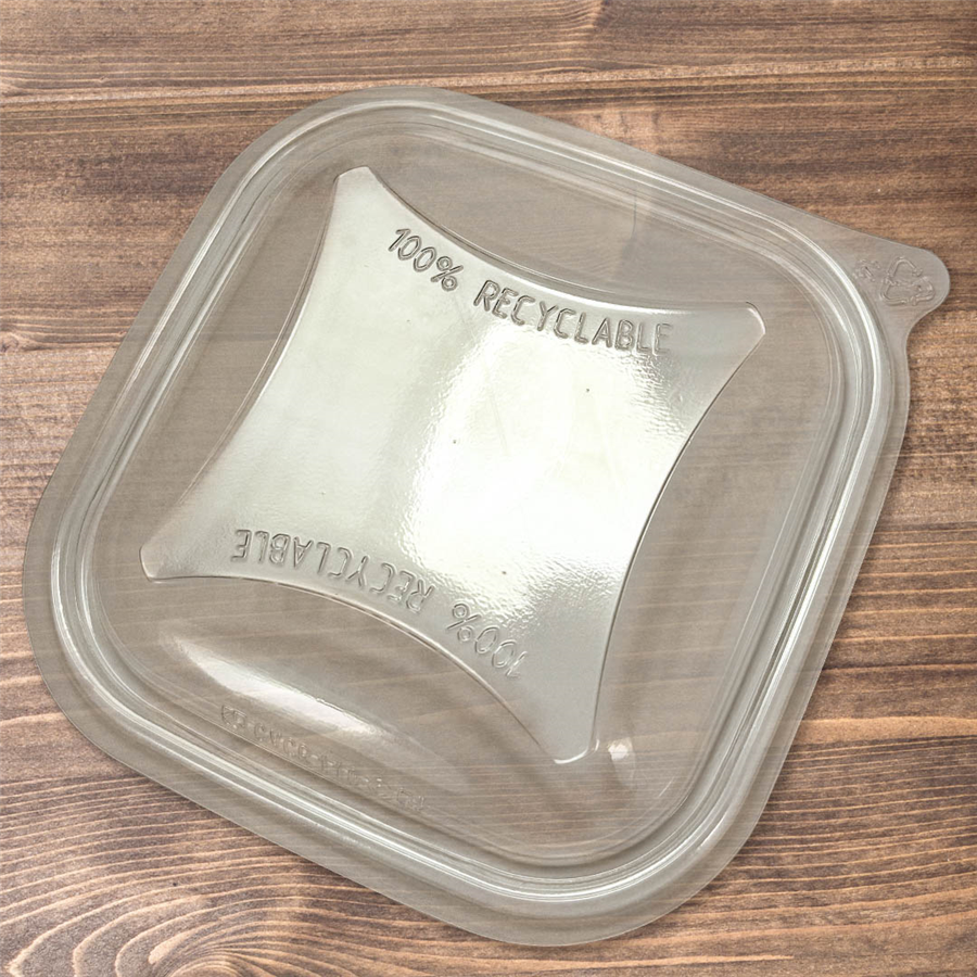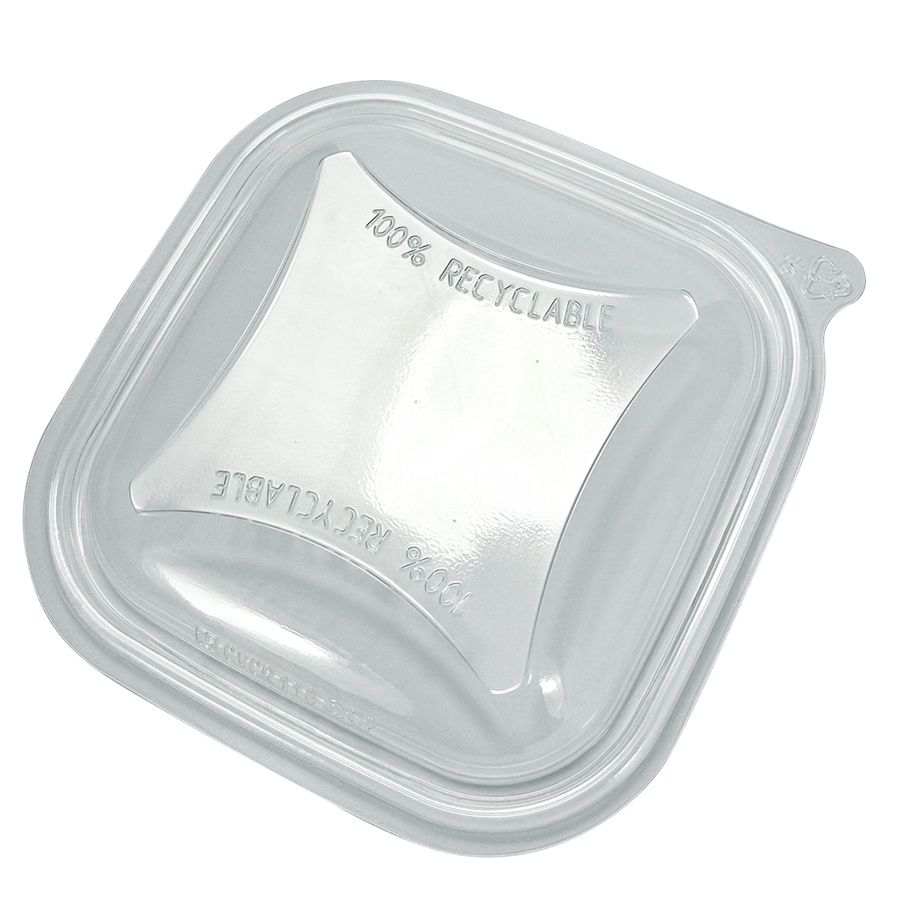 Plastové hranaté víčko na miskyVíčko na plastové rPET misky hranaté je vhodné pro všechny plastové misky s odpovídajícím objemem.Plastová rPET víčka na hranaté misky jsou vhodná k uzavření misek s poc...
