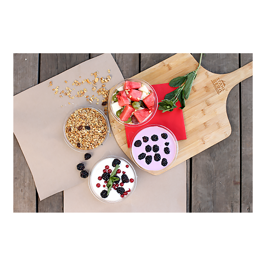 jsou vyrobené z transparentního materiálu, umožňují tak spotřebiteli přehled o čerstvosti obsahu. Tyto misky nejsou náročné na skladování a při rozvozu je lze díky víčku stohovat.