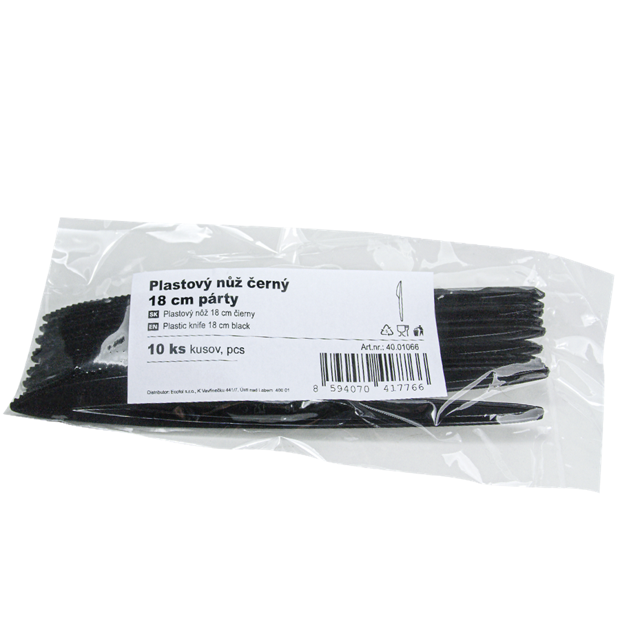 Opakovaně použitelný plastový nůž 18 cm černý - pártyPlastové nože jsou určeny jak k jednorázovému, tak opakovanému použití.Tyto opakovaně použitelné plastové nože lze umývat v myčkách na nádobí, přič...