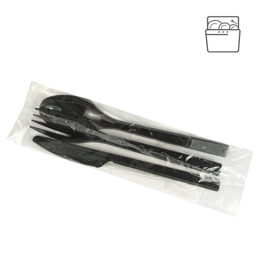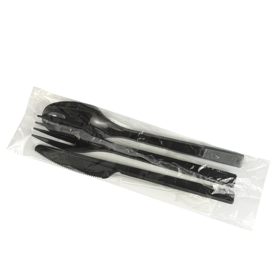 Plastový příborový set PS/PAP černý (vidlička + nůž + lžíce + ubrousek)