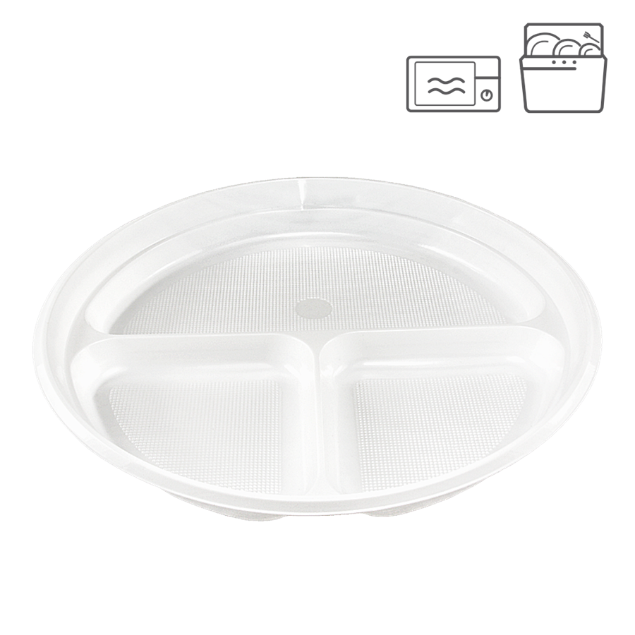 Jednorázový plastový talíř 22 cm třídílný PP ideal pack